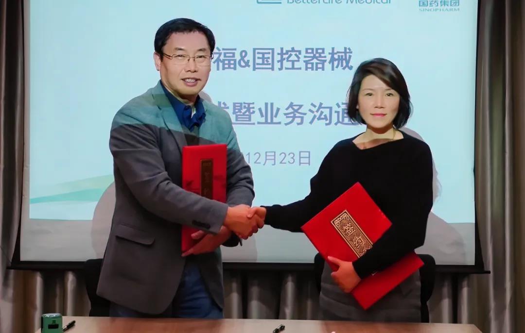2021年12月23日,国药控股医疗器械有限公司与江苏贝泰福医疗科技有限公司战略合作签约仪式在上海国药控股大厦举行,国控器械副总经理(主持工作)胡媚媚女士和贝泰福医疗总经理赵勇博士代表双方签约。双方团队相关负责人共同出席签约仪式。